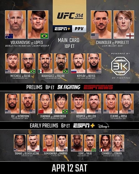 - Алешандре Пантожа против Кая Кара-Франса (бой за титул чемпиона UFC в наилегчайшем весе)