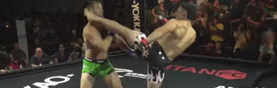 Рангел дос Сантос (Rangel dos Santos) взмыл в воздух и провел красивый нокаут коленом в прыжке на Fusion FC 90 в Лиме, Перу.